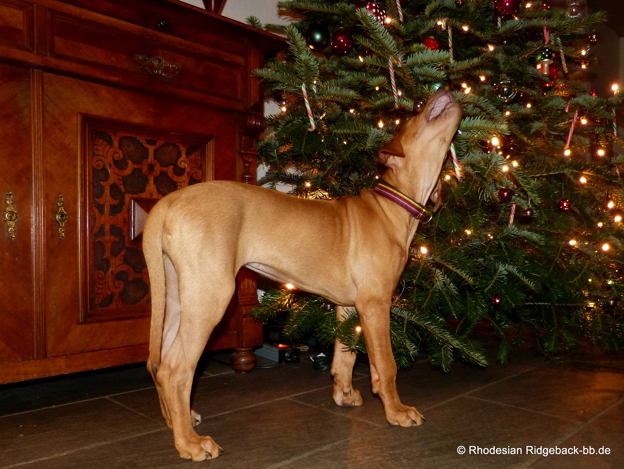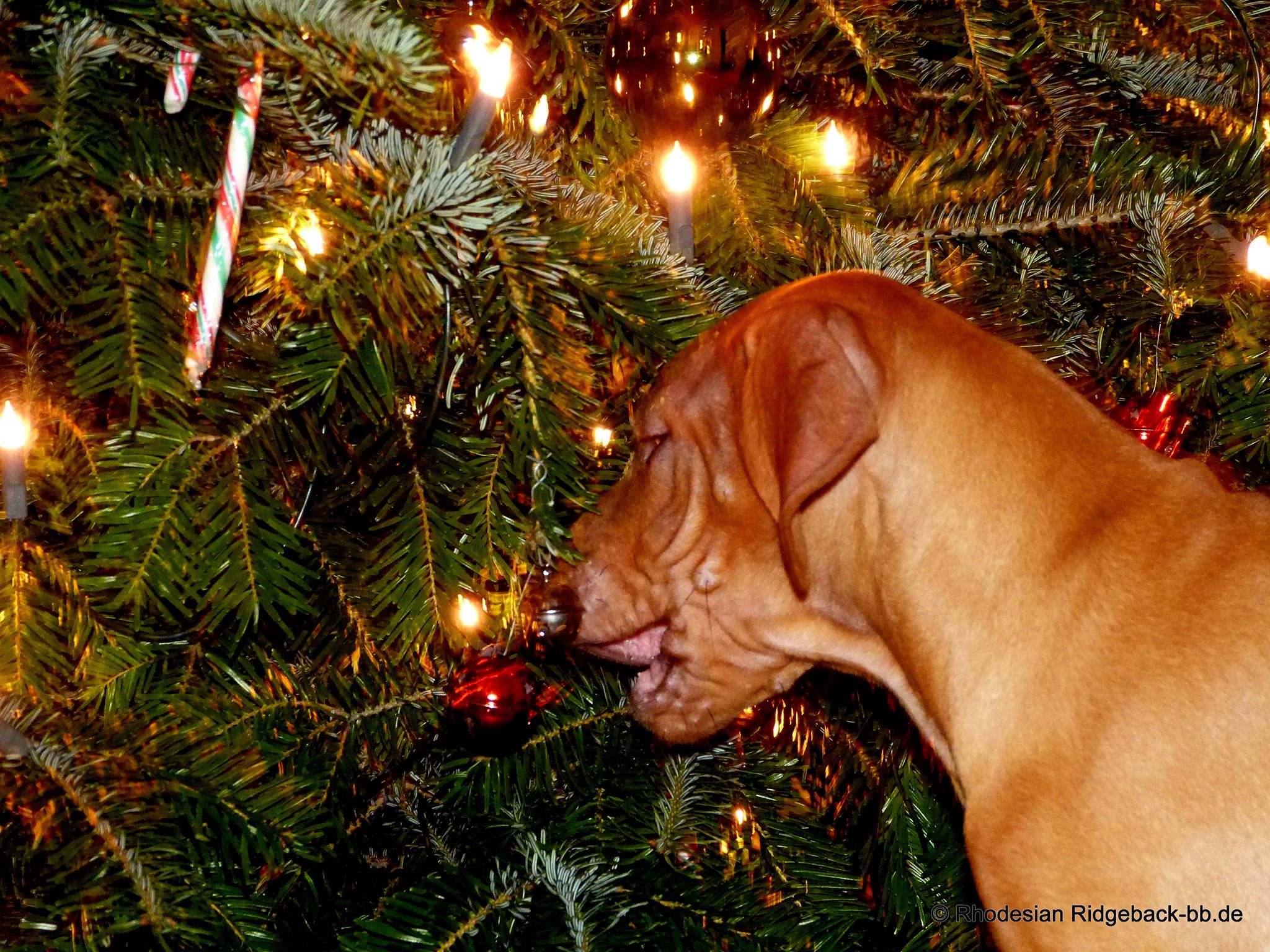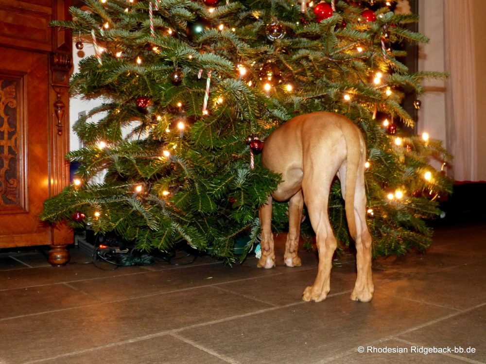 Unser Rhodesian Ridgeback Welpchen Anaya unterm Weihnachtsbaum!